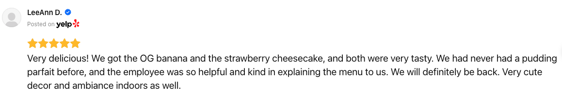 • Note: While we offer a delightful alternative to ice cream, our parfaits are not ice cream and do not melt.
